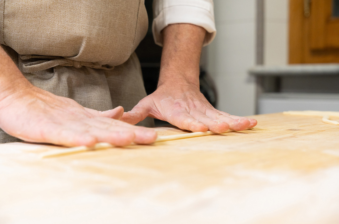 il pane caldo fatto a mano e la pasta fresca tirata al mattarello, proprio come una volta.