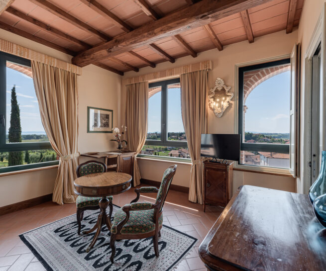 Vergessen Sie die kalten und unpersönlichen Hotelzimmer. Bei einem Aufenthalt in Locanda Poggioleone werden Sie das Vergnügen haben, sich von der herzlichen Umarmung von einer familiären Atmosphäre umgeben zu fühlen: Terrakottaboden, Balkendecken, antike Möbelstücke und unser vornehmes Design werden dafür sorgen, dass Sie sich wie zu Hause fühlen. Dieses traditionelle Gefühl ist aber mit den besten Elementen der Modernität integriert, von den Badezimmerausrüstungen bis zum Minibar, von Klimaanlagen bis zum Kabelrundfunk, vom Fernseher bis zum Safe.