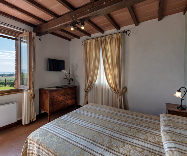 Vergessen Sie die kalten und unpersönlichen Hotelzimmer. Bei einem Aufenthalt in Locanda Poggioleone werden Sie das Vergnügen haben, sich von der herzlichen Umarmung von einer familiären Atmosphäre umgeben zu fühlen: Terrakottaboden, Balkendecken, antike Möbelstücke und unser vornehmes Design werden dafür sorgen, dass Sie sich wie zu Hause fühlen. Dieses traditionelle Gefühl ist aber mit den besten Elementen der Modernität integriert, von den Badezimmerausrüstungen bis zum Minibar, von Klimaanlagen bis zum Kabelrundfunk, vom Fernseher bis zum Safe.
