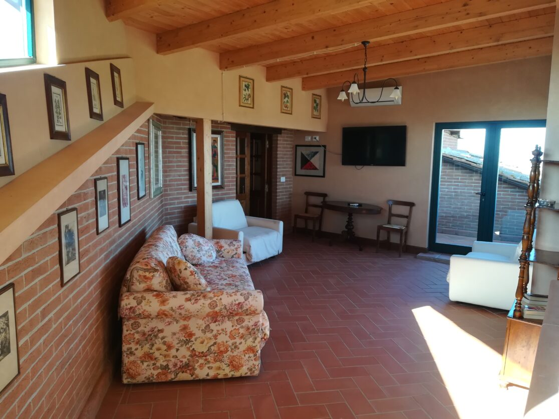Elegant room with two large windows overlooking the park with centuries-old olive trees, the lake and the rolling Umbrian Tuscan hills, reachable by a staircase of about 15 steps.
